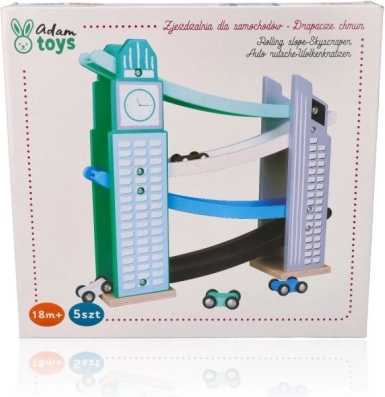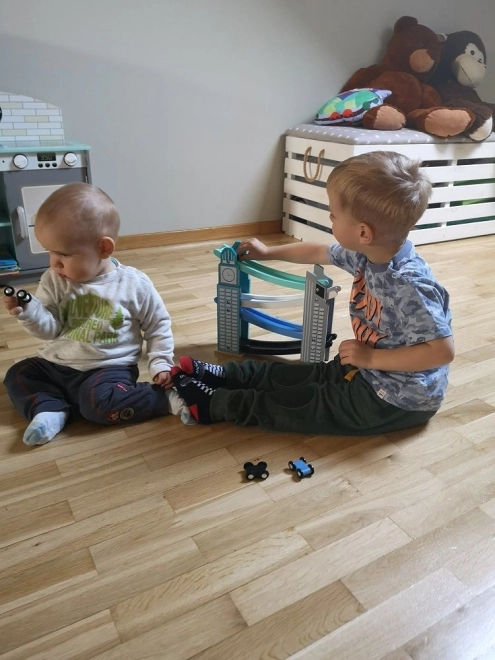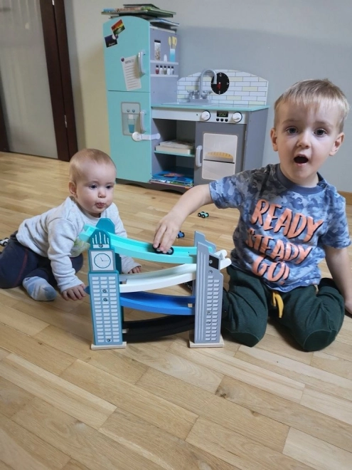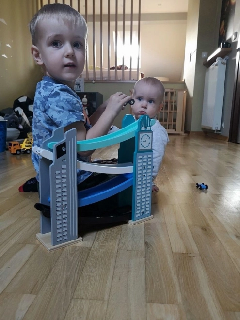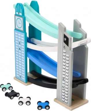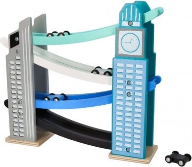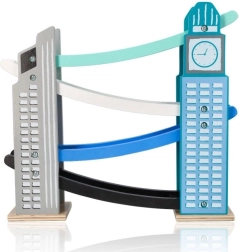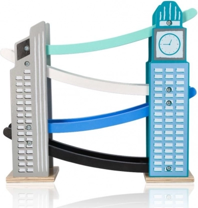 Naše dřevěná autodráha je navržena tak, aby vypadala jako ikonické městské stavby, včetně věže s hodinami. Je vyrobena z kvalitního dřeva a nabízí několik úrovní s nejrůznějšími barevnými rampami v modré, černé a bílé barvě. Děti se budou bavit při pouštění malých barevných autíček z vrcholu až dolů. Dráha nejenže poskytuje zábavu, ale také rozvíjí jemnou motoriku a učí o fyzikálních principech, jako je gravitace a rychlost.