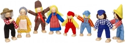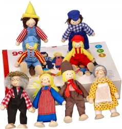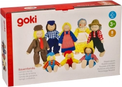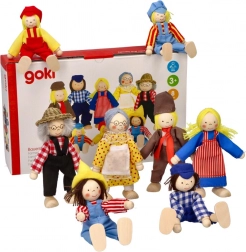 GOKI Rodinka farmářská II nabízí originální dřevěné loutky s látkovými oblečky. Tyto loutky mají pohyblivé nohy a ruce, což umožňuje jejich různorodé polohování.