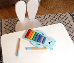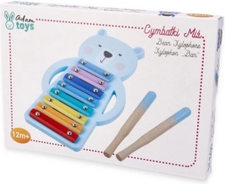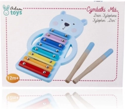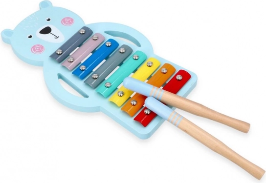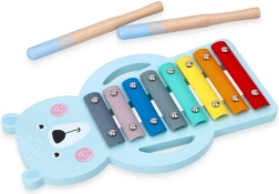 Cymbaálky ve tvaru roztomilého dřevěného medvěda o rozměrech 26 x 16 cm, s 2 paličkami o délce 16,5 cm.
