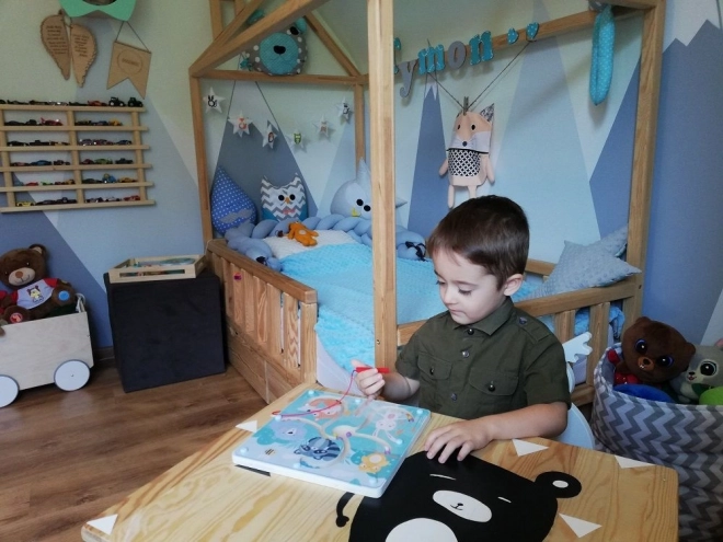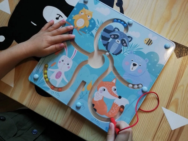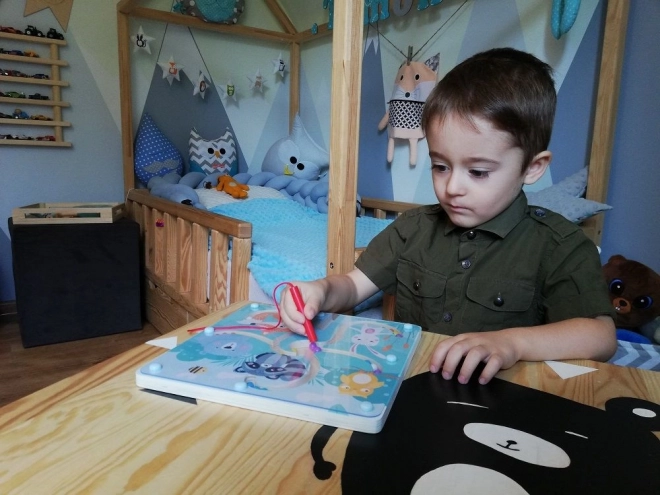 Veselý magnetický labyrint s lesními zvířátky promění učení v hru. Dítě pomocí magnetické tyčinky vodí kuličky spletitými stezkami, přiřazuje barvy a trénuje soustředění i přesnost. Díky uzavřenému provedení se kuličky neztrácejí a hra je bezpečná doma i na cestách.