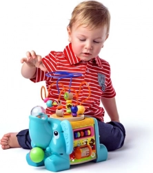 Barevný bead maze na hřbetě slona podporuje jemnou motoriku, koordinaci a koncentraci při přesouvání korálků.