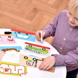 Set CzuCzu Vozidla přináší dětem spoustu chytrých aktivit s motivy různých dopravních prostředků. Knížka na šňůrce je plná pestrých ilustrací a úkolů, které lze díky stíratelnému fixu plnit znovu a znovu. Praktické balení s uchem se skvěle hodí na doma, na návštěvy i do auta.
