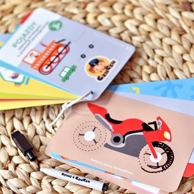 Objevte zábavný a edukativní set CzuCzu pro malé milovníky vozidel. Barevné karty s úkoly a stíratelný fix podporují kreativitu, logické myšlení a jemnou motoriku. Díky opakovaně použitelným stránkám si děti mohou neustále zkoušet nové nápady – ideální na cesty i jako skvělý dárek pro předškoláky.