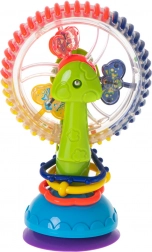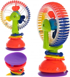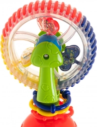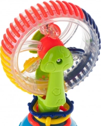 Tato interaktivní hračka pro miminka nabízí rotující prvky, kuličky s chrastícím efektem a silnou přísavku, která ji udrží na místě. Veselé barvy a točící se části přitahují pozornost a podporují soustředění i koordinaci oko–ruka.
