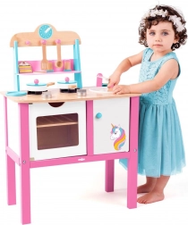 Objevte kouzelnou kuchyňku WOODY s motivem jednorožce, která promění dětský pokoj v kreativní kulinářské studio. Díky pečlivému zpracování z kvalitní překližky a dřeva je stabilní, odolná a vizuálně atraktivní – skvělá volba pro každodenní hru na vaření.