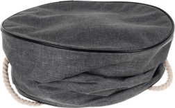 Díky komfortním lanovým madlům koš snadno přenesete z pokoje do pokoje, na terasu i na piknik. Neutrální šedý koš a žluto‑černá podložka zapadnou do každého interiéru.