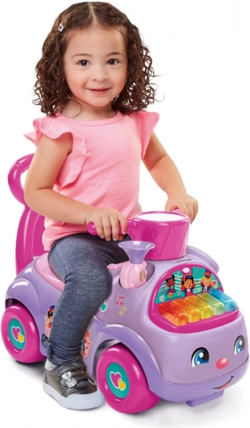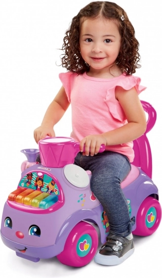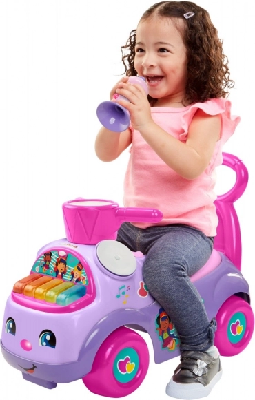 Fialové odrážedlo FISHER-PRICE Hudební paráda je všestranný parťák pro první jízdy i první krůčky. Díky zadnímu madlu poslouží jako stabilní opora při chůzi a po nasednutí se dítě odráží nožičkami, čímž přirozeně posiluje svaly a trénuje rovnováhu.