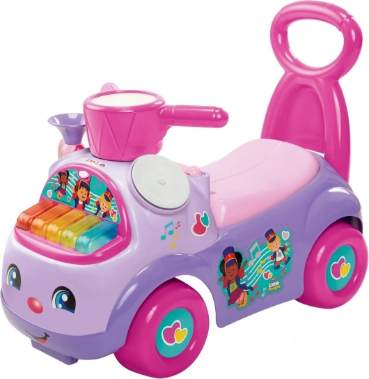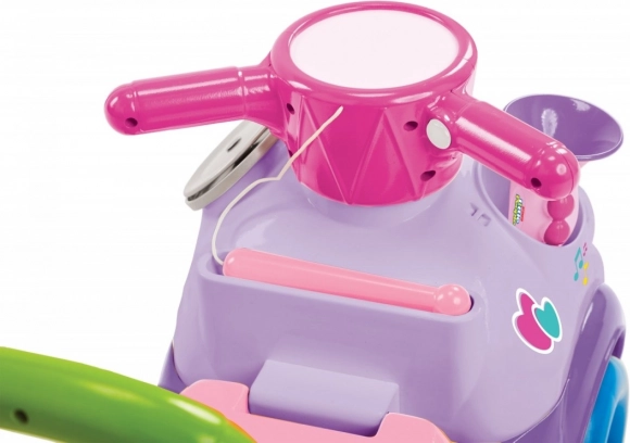 Na čele odrážedla jsou barevné klávesy se dvěma režimy: přehrávání 5 veselých pochodových melodií a volná hudební hra, která podporuje kreativitu a smysl pro rytmus. Nechybí schovka pod sedlem na drobnosti a oblíbené poklady.