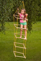 Vyrobeno z pevných dřevěných příček a odolných lanek, které zajišťují bezpečnost při každém použití.