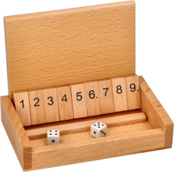 Oblíbená stolní hra Shut the Box (Šance) v praktickém cestovním provedení nabízí rychlá kola, jednoduchá pravidla a spoustu napětí. Hoďte dvěma kostkami, sečtěte body a zaklapněte odpovídající čísla. Vyhrává ten, komu se podaří zavřít všechna čísla, nebo dosáhne nejnižšího zbytku.