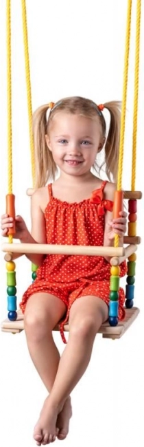 Tato dřevěná houpačka přináší dětem radost z houpání a rodičům klid díky kvalitnímu zpracování a certifikaci CE. Sedátko o rozměrech 30 × 30 cm je stabilní a příjemné na sezení, zatímco nastavitelná délka provazů umožní snadné přizpůsobení různým prostorům.