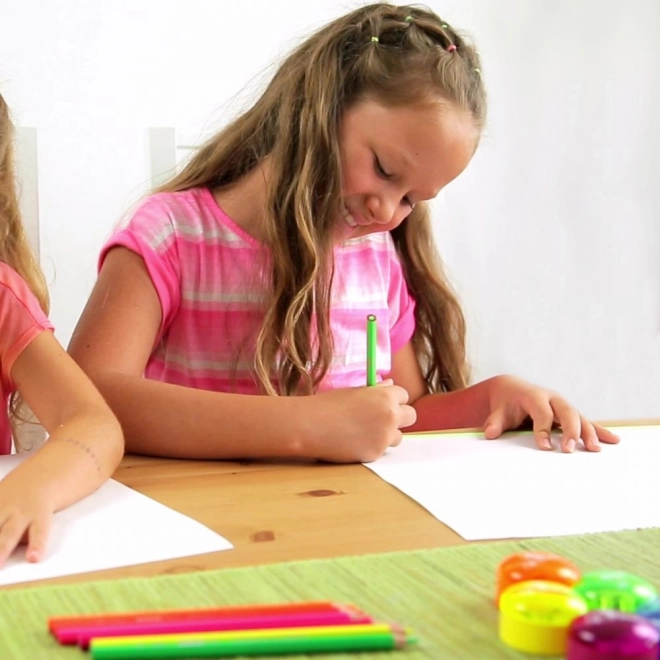 Užívejte si praktické dvojité strouhátko ve výrazných neonových barvách. Strouhátko je perfektní pro různé velikosti tužek a díky krytu zabraňuje rozptylu odřezků.