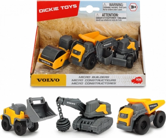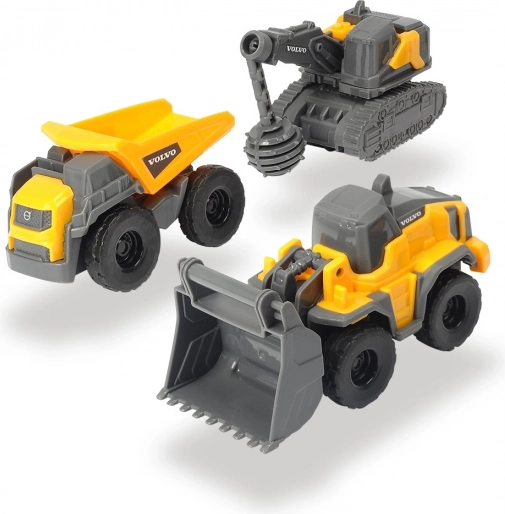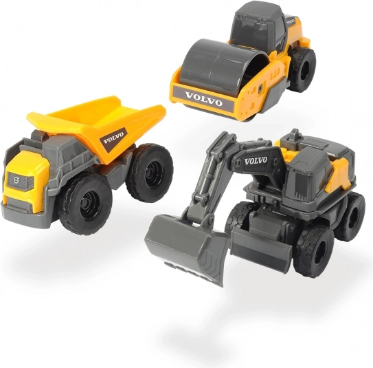Sada stavebních vozidel Volvo zahrnuje tři různé modely: sklápečku, bagr a válec. Jsou vyrobeny z kvalitního plastu a pestrobarevné žluto-šedé provedení zaujme každého malého stavitele.