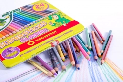 Pastelky JOLLY Supersticks přinášejí širokou paletu 24 zářivých odstínů v praktickém kovovém pouzdře, které chrání pastelky na cestách i doma. Díky kvalitní dřevěné konstrukci a hladké kresbě jsou skvělé pro školu, tvoření i volnočasové kreslení.