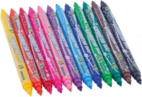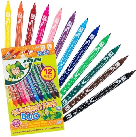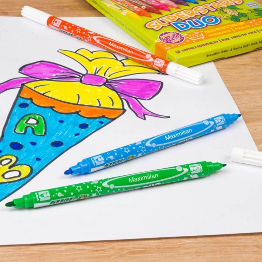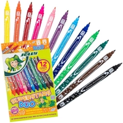 Objevte kreativitu s oboustrannými fixy Superstars Duo v sadě 12 živých odstínů. Každý fix má dvě špičky pro přesné linky i plné vybarvování, ideální pro děti od 3 let i dospělé. Díky kompaktní délce 17 cm se pohodlně drží a snadno se vejdou do penálu. Certifikace CE zaručuje bezpečné používání. Perfektní pro školu, kancelář i domácí tvoření.