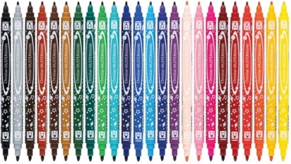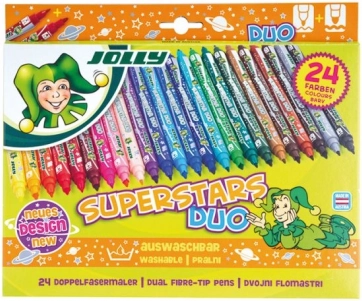 Oboustranné fixy SUPERSTARS DUO nabízejí 24 výrazných odstínů pro kreativní kreslení a vybarvování. Každý fix má 2 hroty v 1 pro jemné linky i plné plochy, jsou vhodné od 3 let a splňují CE.