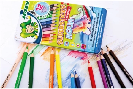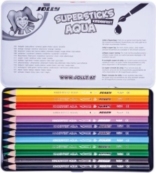 Sada 12 akvarelových pastelek v praktické kovové krabičce pro malé i velké tvůrce. Pastelky JOLLY Supersticks Aqua se snadno rozmazávají vodou pro jemné přechody a efekty, mají odolné jádro a dlouhou životnost. Ideální na cestování i domácí tvoření. Akvarelový efekt, 12 sytých barev, pevná kovová krabička, vhodné od 3 let.