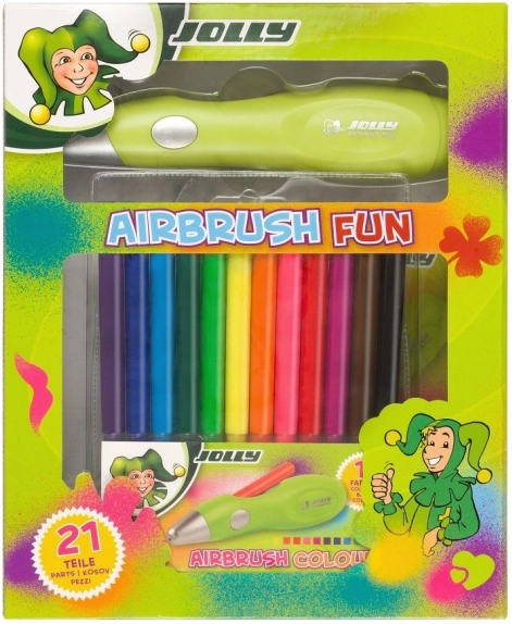 Airbrush pero JOLLY promění každý papír, karton či textil v originální dílo. Díky elektrickému rozprachu barvy dosáhnete plynulých přechodů, stínování i přesných linií bez námahy. Zábavné šablony s písmeny, čísly a motivy usnadní začátky a podpoří dětskou fantazii.