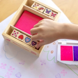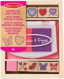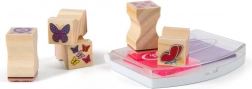 Stempelky Motýlky a Srdíčka: Všechny prvky jsou uloženy v elegantní dřevěné krabici, která umožňuje snadné úklid po kreativním hraní. Tato stempelky nabízí neomezené možnosti pro různé kreativní projekty.