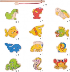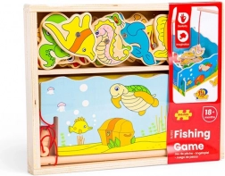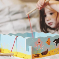 Popadněte prut a vydejte se na lov do podmořského světa! Tato dřevěná hra s magnety přináší zábavu i učení v jednom – děti trénují jemnou motoriku, koordinaci oko–ruka a trpělivost. Set obsahuje 12 mořských tvorů, 2 pruty a pevnou dřevěnou krabičku ve tvaru akvária. Ideální hračka pro děti od 3 let z kvalitního dřeva s bezpečnými barvami.