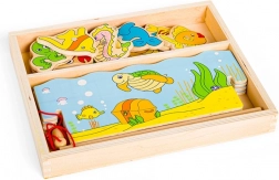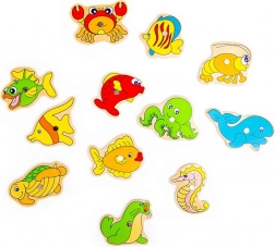 - 12 mořských tvorů, 2 magnetické pruty, pevná dřevěná krabička (konstrukce nádrže)