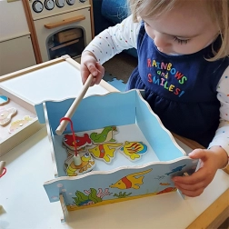 - dřevěná magnetická rybářská hra
