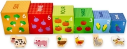 Tento barevný set stohovacích kostek s motivy farmy nabízí dětem nekonečné možnosti hry: od stavění vysoké věže přes vkládání a třídění až po objevování čísel, plodů a roztomilých zvířátek. Každá kostka je ilustrovaná tak, aby podporovala vizuální vnímání, rozpoznávání tvarů a množství i první počítání.