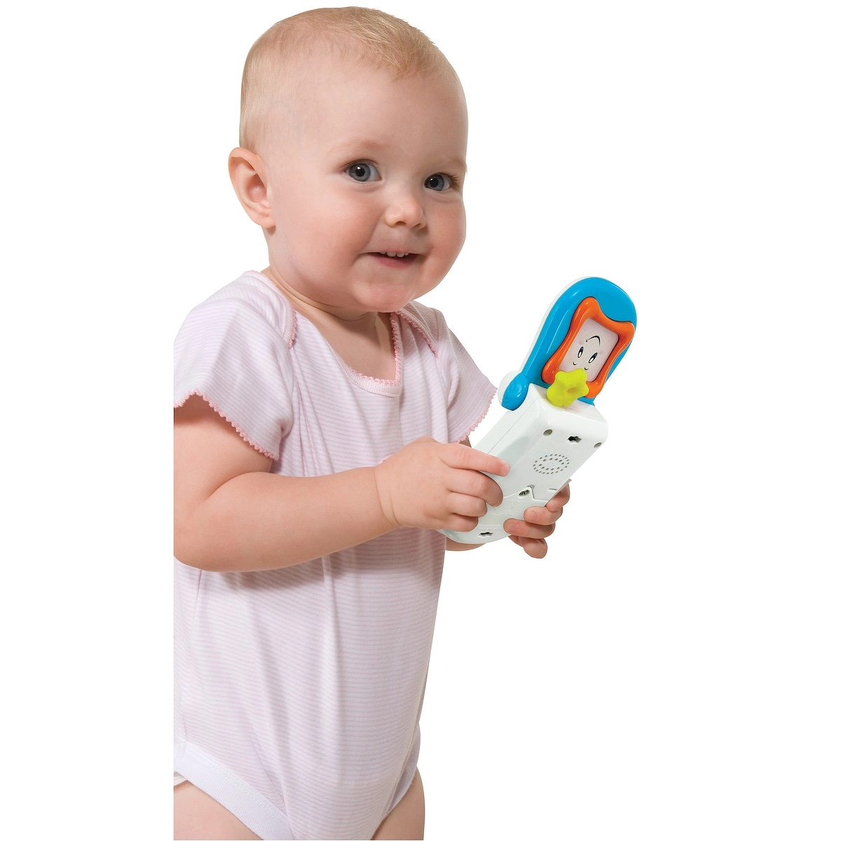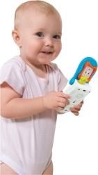 Telefon má praktický úchyt pro snadné zavěšení na postýlku nebo do kočárku. Antenka slouží jako kousátko, které uleví dásním při prořezávání zoubků. Děti si užijí mačkání tlačítek a otevírání klapky, čímž přirozeně trénují jemnou motoriku a koordinaci oko–ruka.