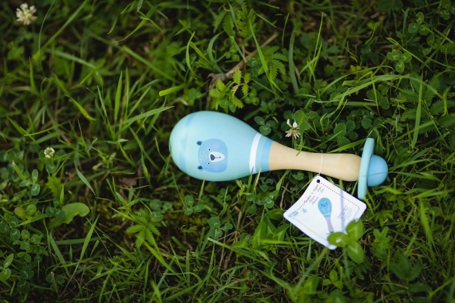 Roztomilá dřevěná marakas s motivem medvídka podporuje rozvoj sluchu, rytmického cítění a jemné motoriky už od 5 měsíců. Bezpečné barvy a příjemný tvar pro malé ručičky.