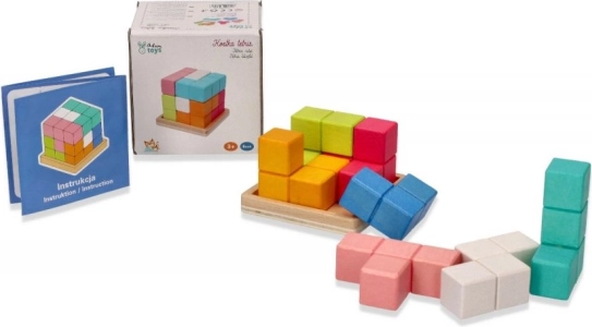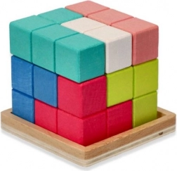 Puzzle kostka pomáhá dětem rozvíjet jemnou motoriku a zvyšuje jejich schopnost řešení problémů. S jasnými barvami jako modrá, oranžová, růžová a přírodní dřevo, tato hračka nejen baví, ale také vzdělává.