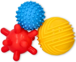 Každý míček má unikátní povrch, který stimuluje hmatové smysly a podporuje motorické dovednosti.