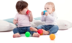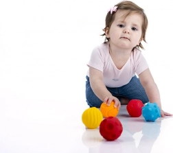 Průměr cca 6 cm usnadňuje uchopení, mačkání i házení, takže jsou míčky perfektní pro první motorické hry.