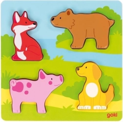 Objevte zábavnou a vzdělávací dřevěnou vkládačku GOKI, která spojuje dotykové vjemy, tvary a barvy. Děti si procvičí jemnou motoriku, logické myšlení i poznávání zvířátek díky hmatovým ukázkám „srsti a kůže“ pod jednotlivými dílky. Vkládačka je ideální pro první učení hrou již od 1 roku.