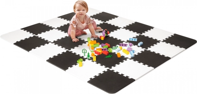 Pěnový koberec KINDERKRAFT Luno, černo-bílý, 30 ks (29,5 × 29,5 cm)