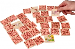 Kartičky jsou z kvalitního dřeva s hladkými hranami a trvanlivým potiskem. Díky kompaktním rozměrům se hra hodí domů, do školky i na cesty. Nadčasový design a přírodní materiál zaručují bezpečnou a dlouhodobou hru.