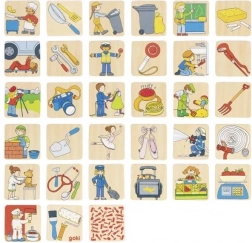 Dřevěné pexeso Povolání od GOKI přináší dětem i dospělým chytrou zábavu, která rozvíjí soustředění, logické myšlení a komunikaci. Každá dvojice zobrazuje profesi a k ní patřící předmět – děti se tak přirozeně učí poznávat různé profese a jejich nástroje.