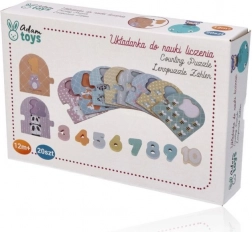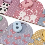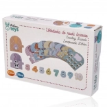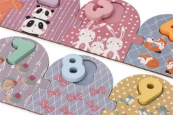 Tato kvalitní dřevěná ukládanka spojuje zábavu a učení. Každé číslo 1–10 má svou destičku s roztomilými zvířátky v odpovídajícím počtu, takže dítě snadno chápe vztah mezi číslicí a množstvím. Vypouklé, barevné číslice se pohodlně drží malým dětským ručkám a podporují rozvoj jemné motoriky i zrakového vnímání.