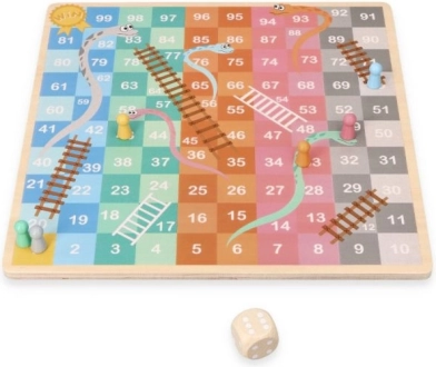 Tato dřevěná desková hra přináší hned dvě klasiky v jednom. Na jedné straně najdete strategickou HALAMA (čínské dámy/čínská dáma), kde je cílem přesunout všechny své kameny na protilehlou stranu. Na druhé straně čeká svižná hra Hadi a žebříky, v níž se s kostkou posouváte k cíli, stoupáte po žebřících a sklouzáváte po hadech.