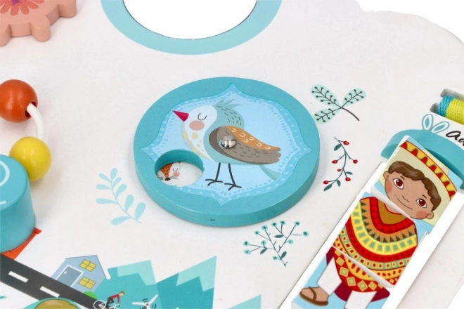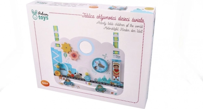 Dřevěná tabule „Děti světa“ je navržena tak, aby přirozeně podporovala smyslový rozvoj a samostatné objevování. Pastelová městská kulisa se zvířátky, autíčky a postavičkami láká ke zkoumání a podněcuje fantazii. Dítě si samo volí tempo i způsob hry, čímž posiluje sebedůvěru a trpělivost.