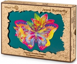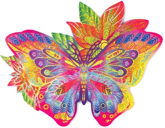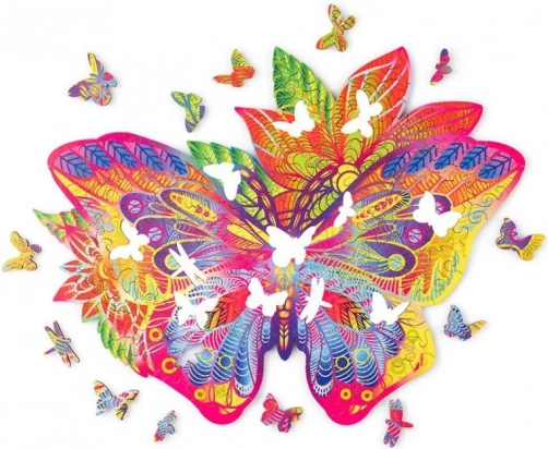 Toto elegantní dřevěné puzzle ve tvaru motýla potěší každého, kdo miluje estetiku, výzvy a kvalitní zpracování. Realistické křivky a pestré vzory po složení vytvářejí působivý obraz, který se skvěle hodí k vystavení.