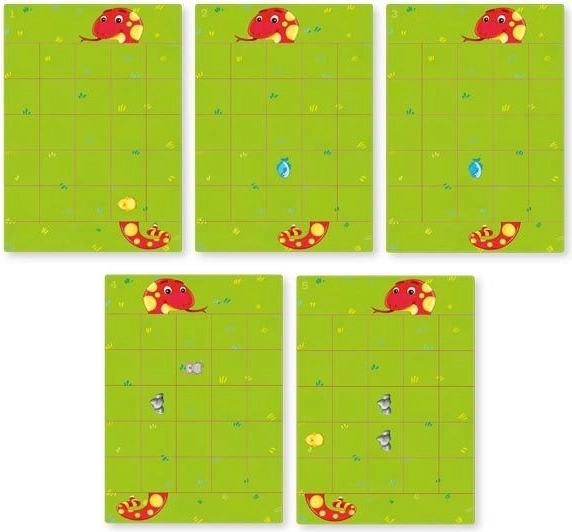 V této hře umístíte hrací kartu na základní rámeček a pomocí magnetických dílků vytvoříte cestu, po které se had dostane k jeho vyobrazené potravě. Každá ze 22 herních variant nabízí odlišné výzvy a zvyšuje obtížnost postupně.