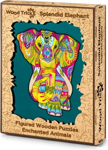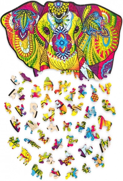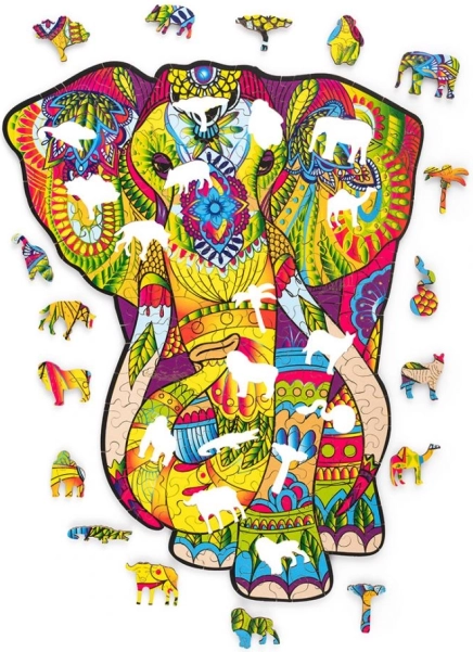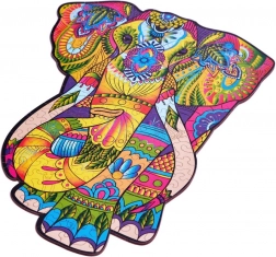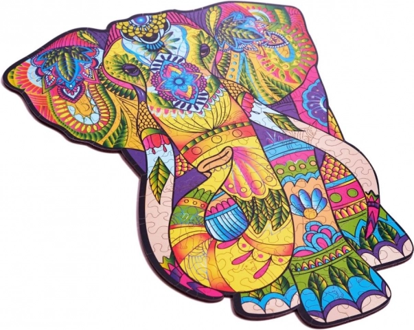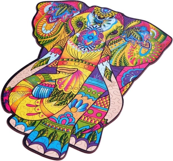 Toto detailně zpracované puzzle slona z kvalitního dřeva okouzlí propracovanými vzory a sytými barvami. Ideální pro dospívající a dospělé, kteří hledají stylovou zábavu i designový doplněk interiéru.
