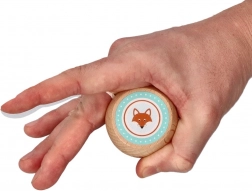 Kvalitní dřevěné tělo s veselými motivy (liška, srdce, houbička aj.) je příjemné do ruky a láká ke hře.