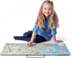 Tato interaktivní mapa Evropy umožňuje dětem vnímat Evropy jako celek, plný zajímavostí. Děti mohou pokládat dílky představující jednotlivé státy na magnetickou plochu, což jim pomáhá utužit znalosti o umístění zemí na starém kontinentu. Díky obrázkům na dílcích děti snadno poznají charakteristické prvky jednotlivých států, jako jsou stavební památky, přírodní zdroje nebo výroba specifická pro danou oblast.