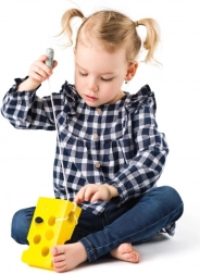Masivní dřevěné provedení s hladkými hranami je bezpečné pro malé ruce, výrazná žlutá barva láká k hraní a podněcuje fantazii. Jednoduché zadání – provléci myšku „labyrintem“ – se dá obměňovat a přizpůsobit dovednostem dítěte.