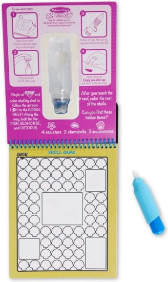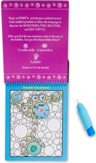 Interaktivní vodní omalovánka z edice On the Go přináší dětem hodiny tvůrčí zábavy. Recyklovatelný vodní fix odhalí na stránkách mořský svět, úkoly a bludiště, které po vyschnutí opět zmizí – a malování může začít znovu.