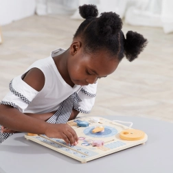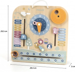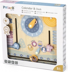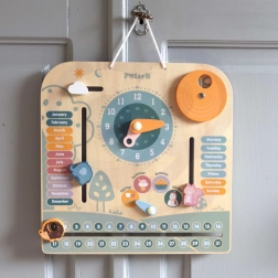 Dřevěný kalendář a hodiny PolarB Montessori je perfektní kombinací hry a učení. Pomáhá dětem naučit se rozpoznávat čas a dny v týdnu, učit se roční období a počasí s pomocí interaktivních prvků.