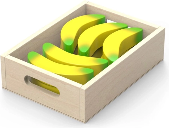 - - set obsahuje 10 krabiček s 10 typy ovoce a zeleniny: hrušky, pomeranče, kiwi, mrkev, houby, citrony, jablka, česnek, lilky a banány,