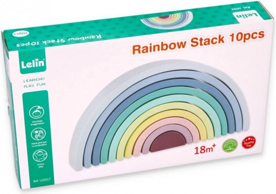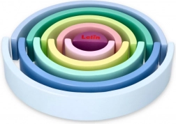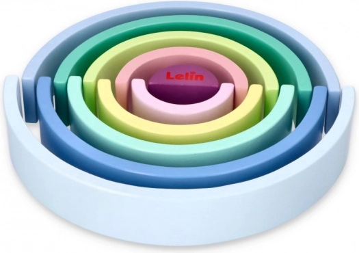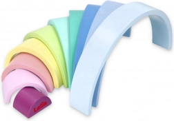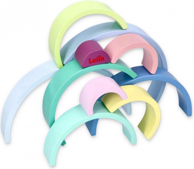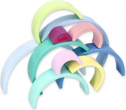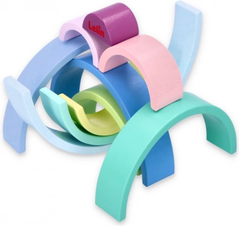 Dřevěné oblouky v pastelových barvách jako modrá, zelená a růžová podporují znalost barev a kreativní hru.