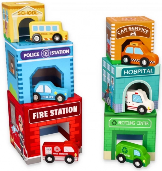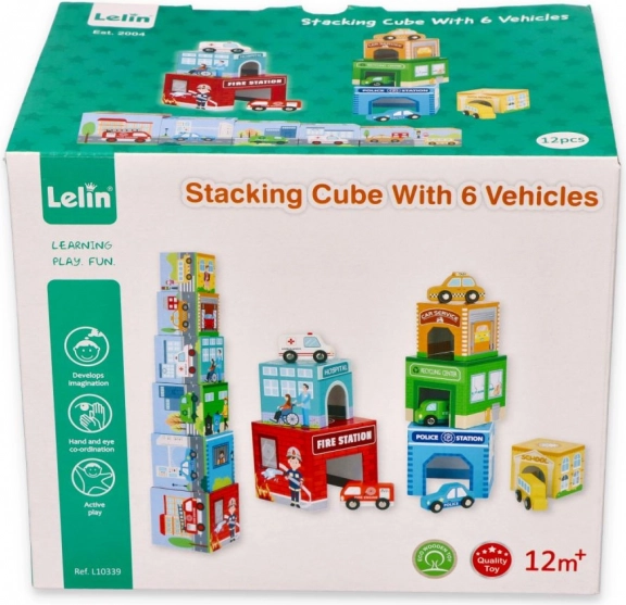 Tato kreativní pyramida z kelímků s vozidly nabízí dětem nekonečné možnosti hry – od stavění vysoké věže až po vkládání kelímků do sebe. Každý díl je barevný a snadno uchopitelný, což rozvíjí motorické dovednosti a podporuje logické myšlení.